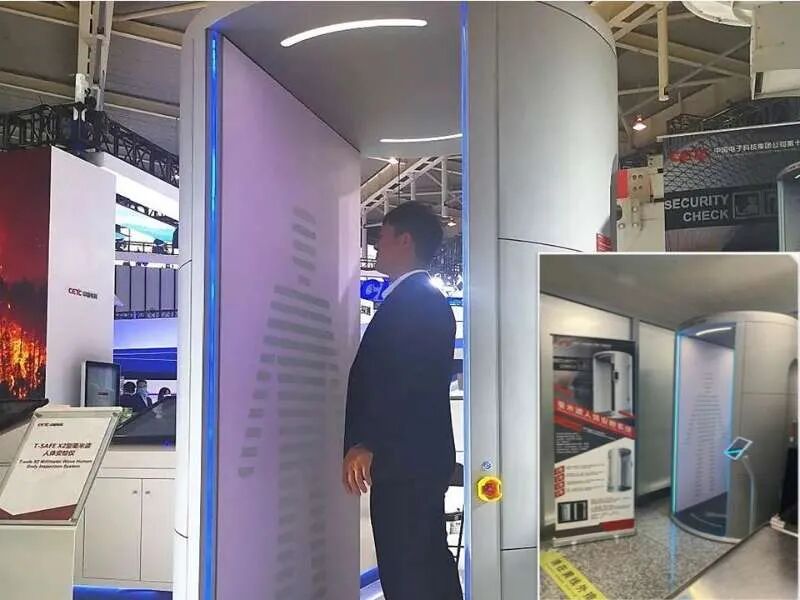 “安保卫士”T-safe X2型毫米波人体安检仪首次出现在国内展会现场,是目前国内工作频段最高的主动式毫米波人体安检仪,工作于E波段毫米波频段。它将武器装备合成孔径雷达技术应用于民生项目,辐射功率仅为手机信号的千分之一,对人体安全无害,具有可视化、高精度、全自动、无接触等优势。与传统金属安检仪不同,它可穿透常见衣物,对人体体表进行三维成像,对金属、陶瓷、液体等多种材质的危险品进行准确识别定位, 安检准确度及同行效率极大提升,代表了国际先进安检模式的潮流和趋势。
