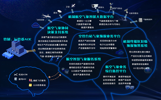 “风云专家”智慧机场气象综合保障系统,依托人工智能技术,有效整合机场相控阵天气雷达、风廓线雷达、毫米波云雾雷达、激光雷达等多种装备信息,实现对强对流、低云低能见度、大风及风切变等危险天气的精细化监测、精准化预警,结合二次雷达等空管监视装备,将气象信息与飞机航行信息融合,通过三维立体渲染技术动态显示,以AI专家感知辅助人工判断,能够有效保障空管运行安全,提高空管运行效率。